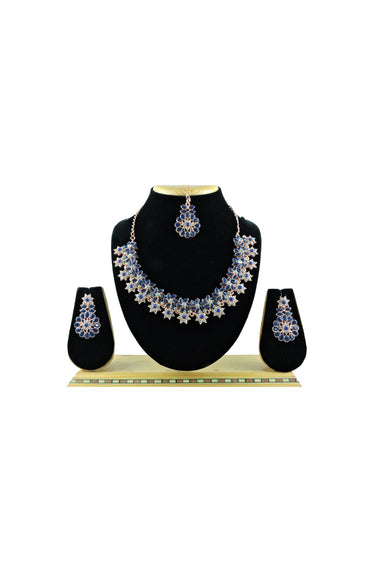 Alloy Material Navy Blue Color Beatific Necklace With Earrings and Mang Tikka