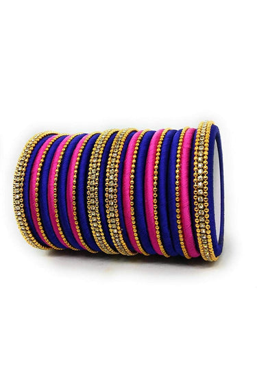 Fancy Handmade Silk Thread Blue And Rani Color Designer Bangles Set