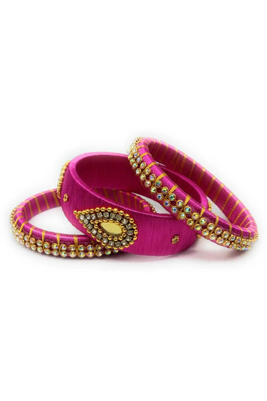 Pink Color Silk Thread Customized Handmade Bangles Set