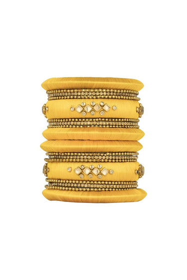 Yellow Handmade Silk Thread Designer Bangle Set For Function