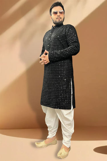 Striking Black Color Velvet Fabric Peshawari Style Indo Western Set