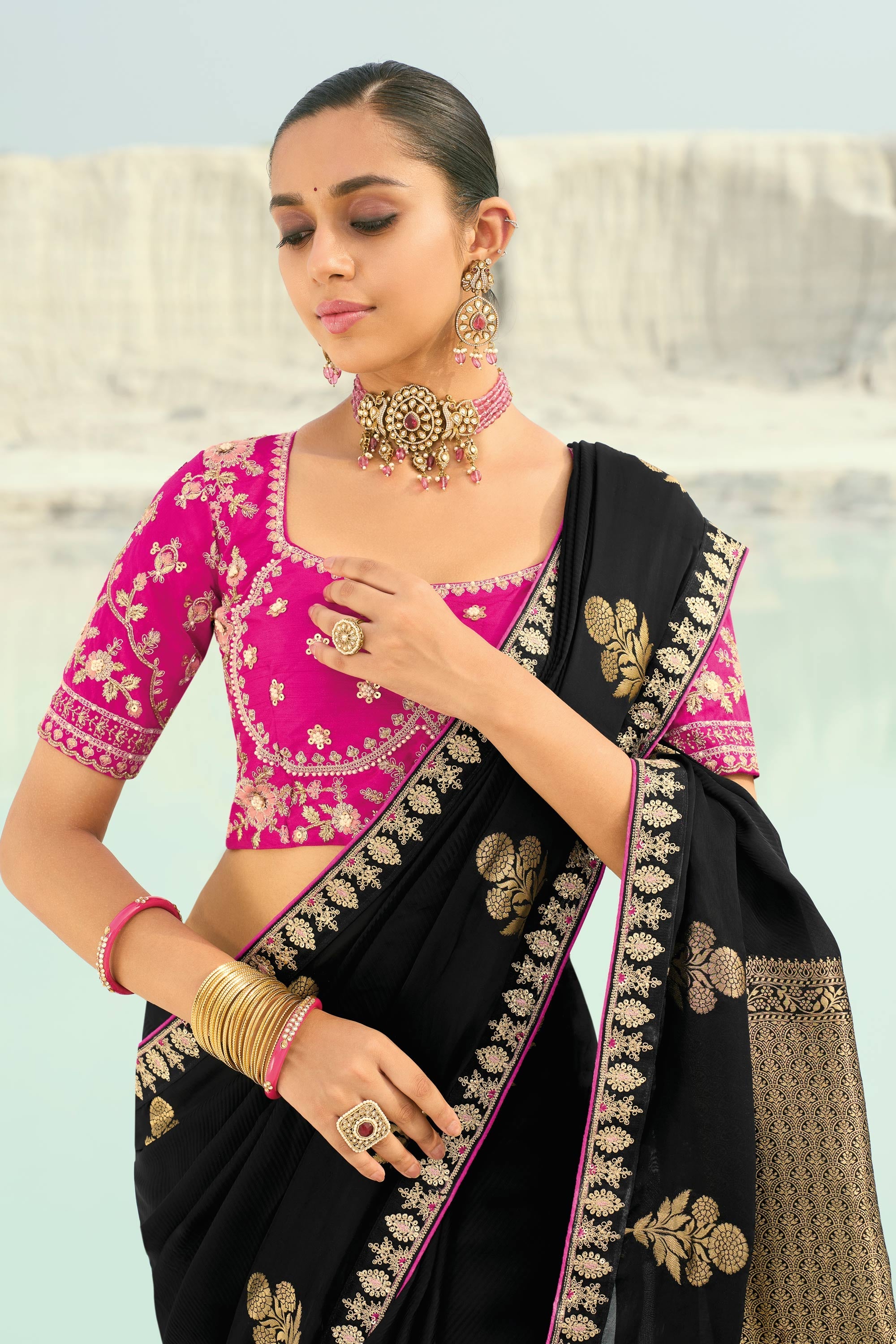 Make every celebration unforgettable with this graceful Wedding Wear Viscose Fancy Border Work Saree paired with a stunning embroidered blouse. The saree’s sleek design features exquisite border detailing that highlights your timeless beauty and matches a variety of festive occasions. The lightweight viscose material is soft and gentle, ensuring you stay comfortable during extended hours of wear. Paired with an intricately embroidered blouse, this saree exudes a charming and traditional appeal that never goes out of style. Ideal for weddings, festive functions, and cultural ceremonies.