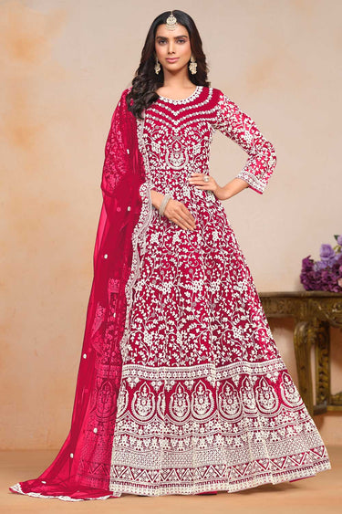 Classic Rani Color Embroidered Anarkali Suit In Net Fabric