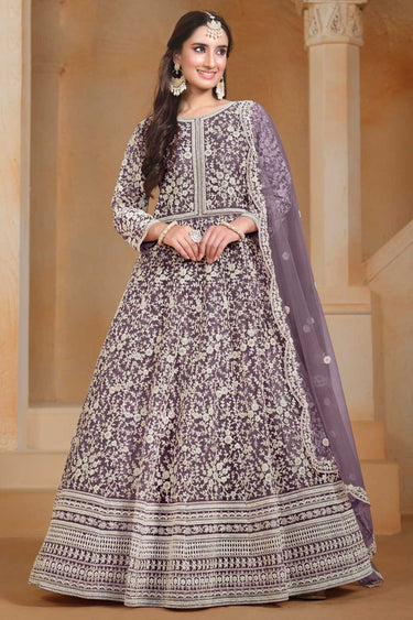 Tempting Net Fabric Lavender Color Function Style Anarkali Suit