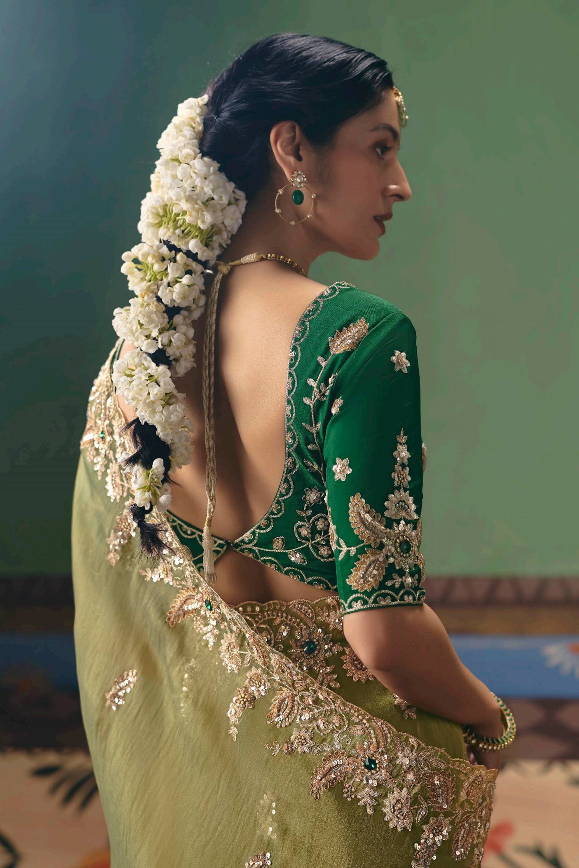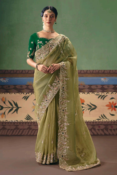 Art Silk Embroidered Border Work Green Saree For Function Wear
