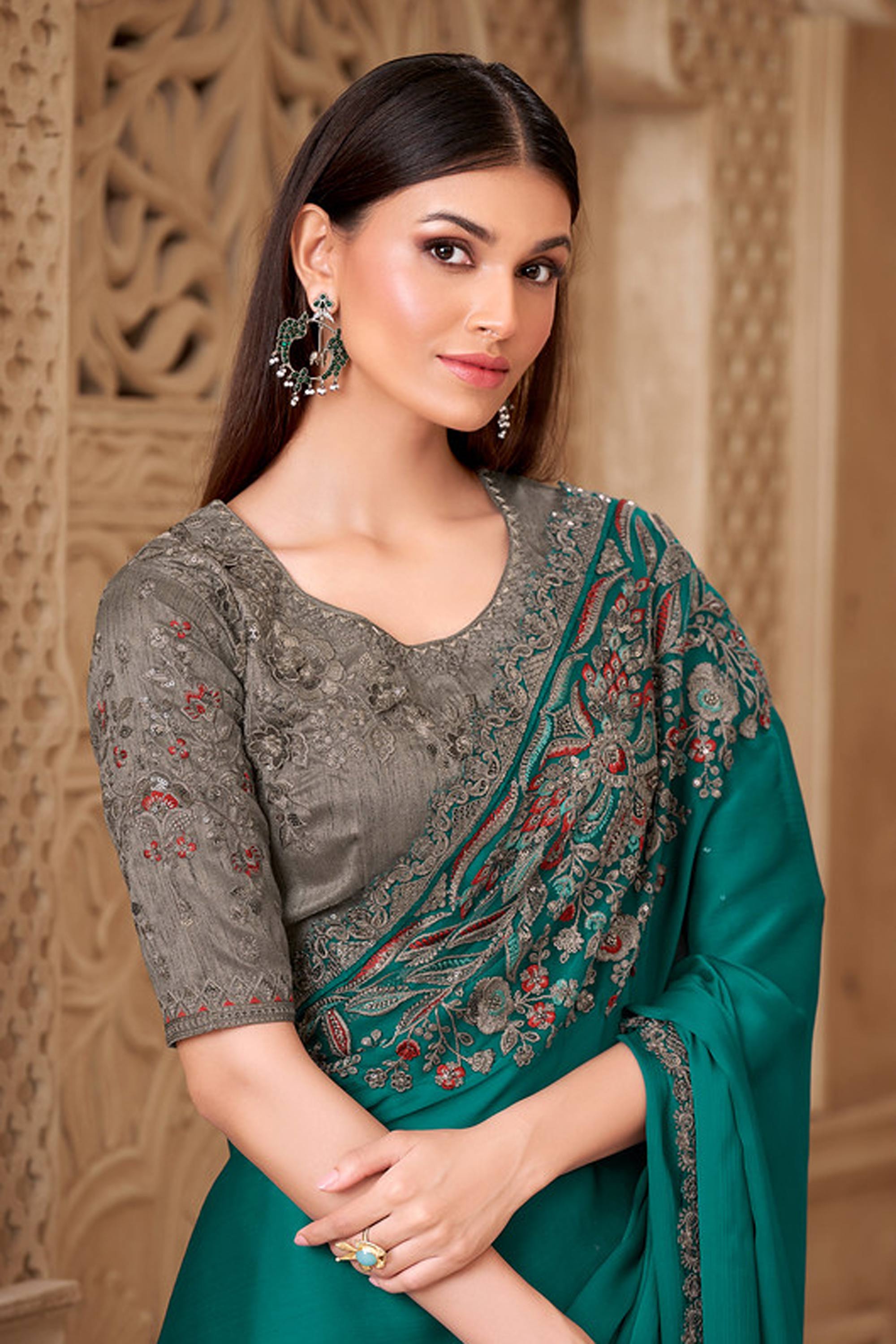 Art Silk Fabric Teal Party Wear Saree