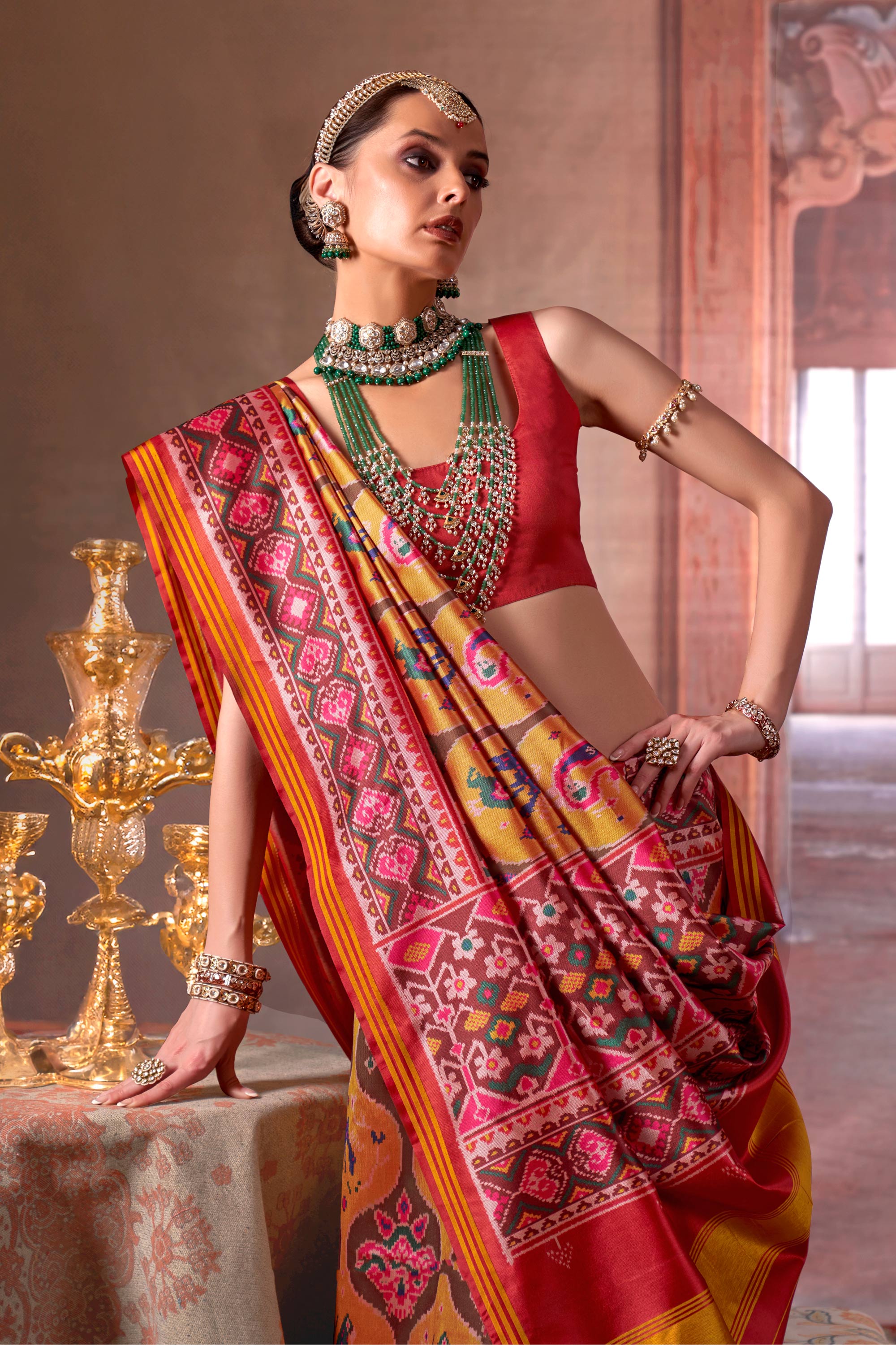 Art Silk Mustard Patola Printed Saree For Festive Wear