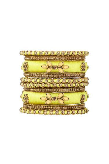 Designer Silk Thread Handmade Bangles Jewellery In Yellow