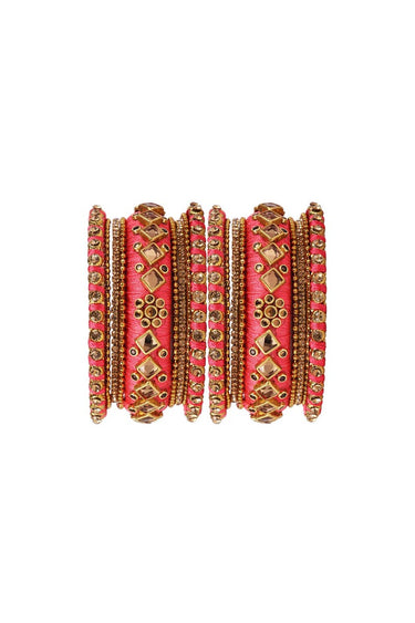 Designer Wedding Wear Silk Thread Handmade Bangles Set In Peach