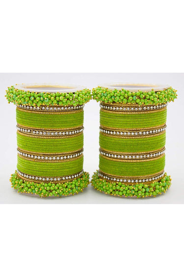 Fancy Handmade Silk Thread And Pearl Beaded Green Designer Bangles Set