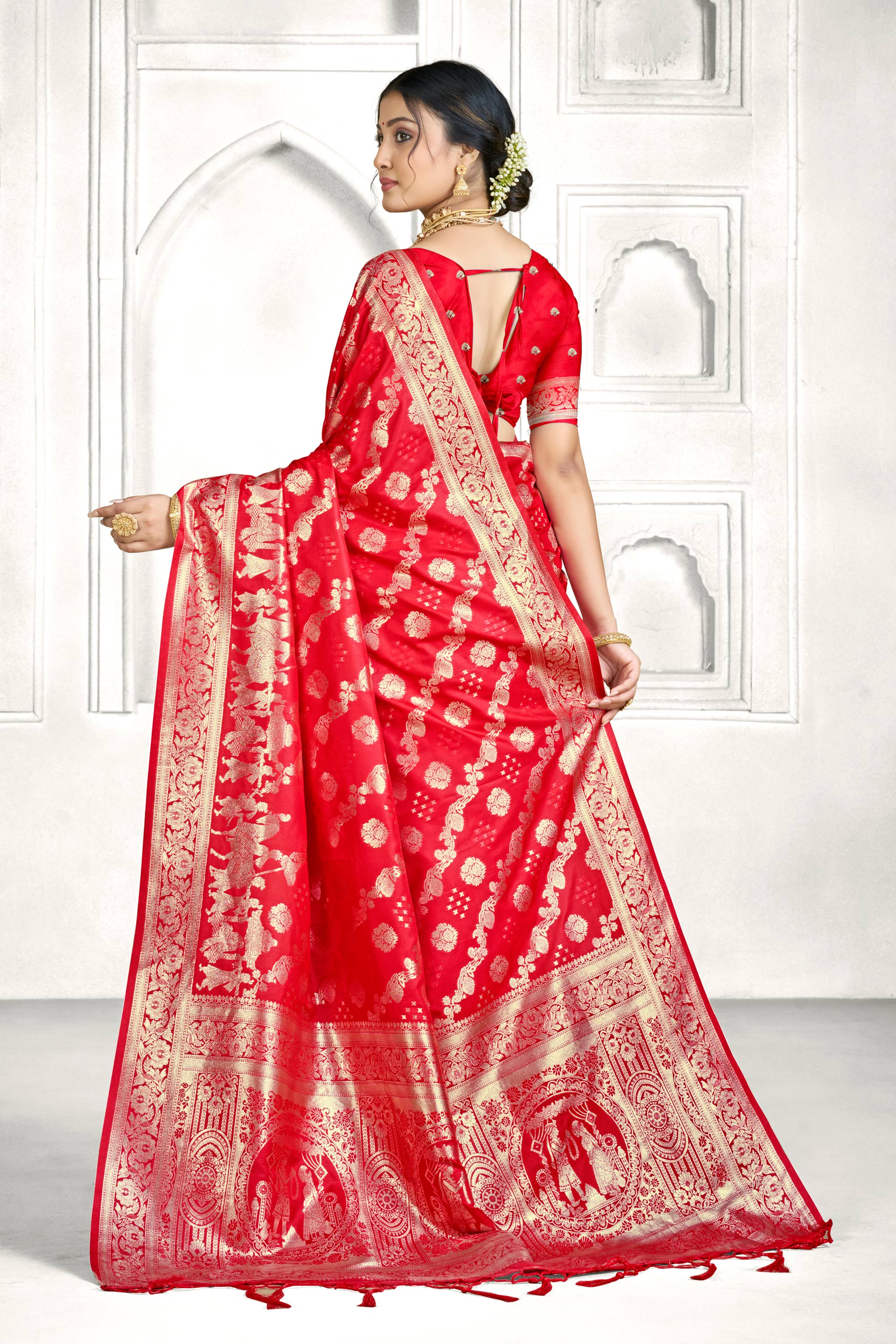 Weaving Work Red Traditional Silk Saree For Function Wear