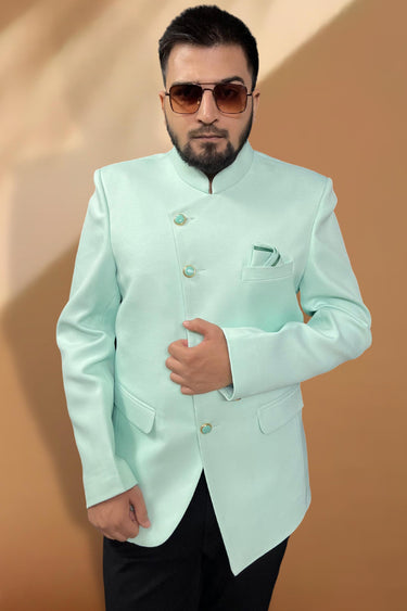 Fancy Wedding Wear Attractive Readymade Men Blazer In Sea Green Color