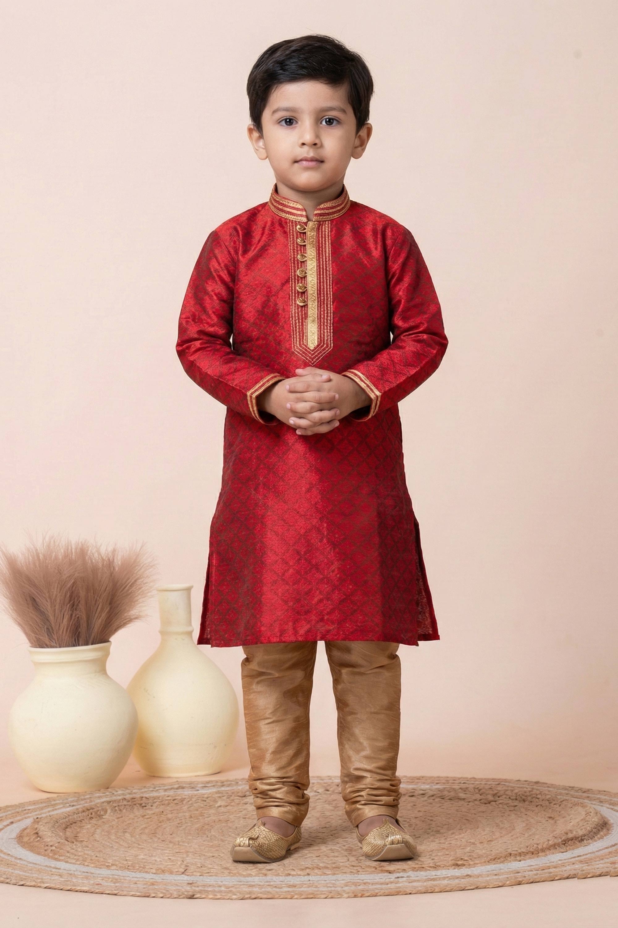 Art Silk Red Festive Wear Readymade Kurta Pyjama For Boys