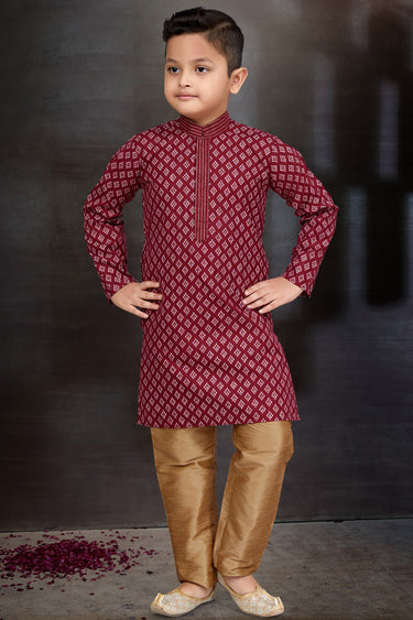 Maroon Color Occasion Wear Cotton Fabric Designer Readymade Kurta Pyjama For Boys