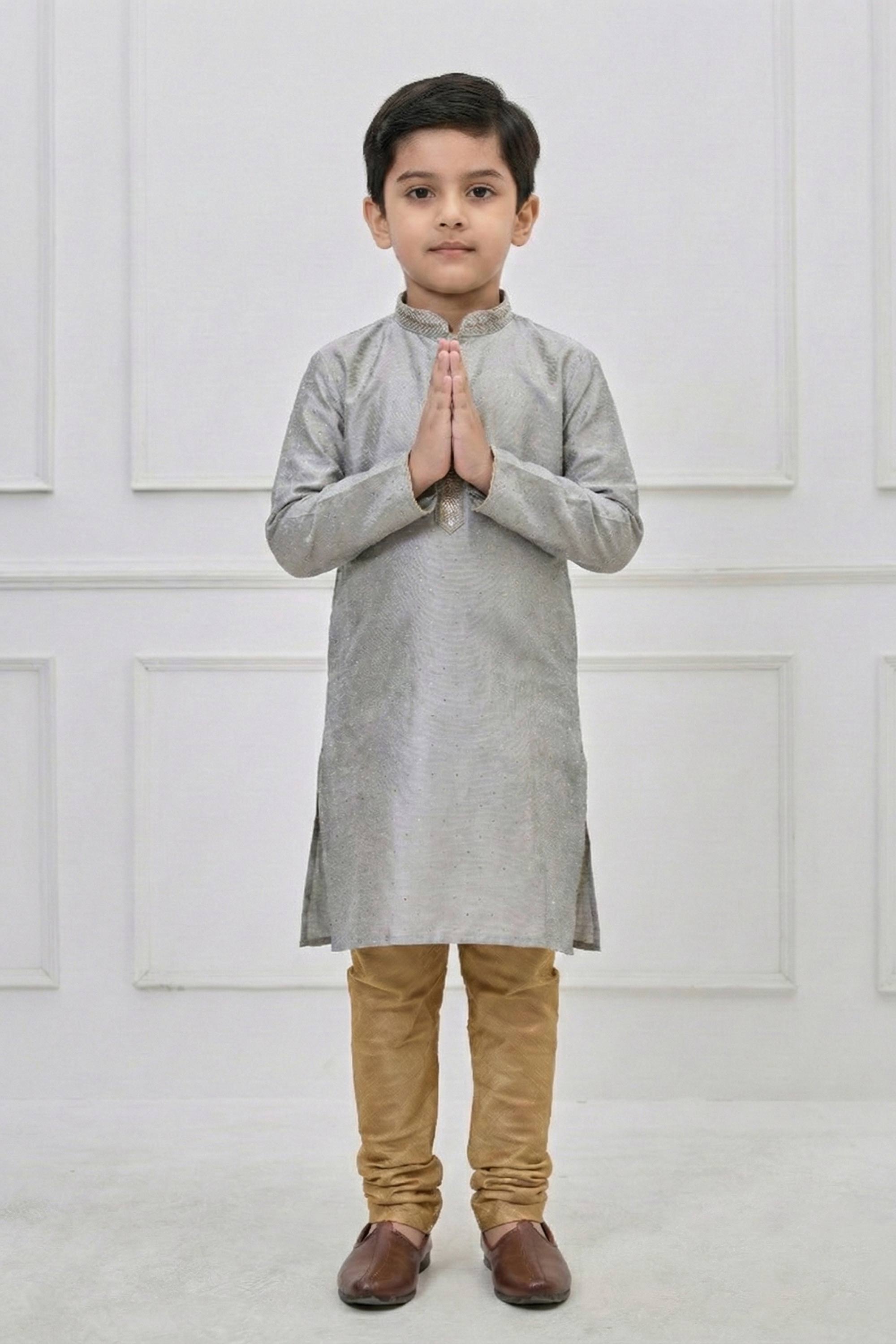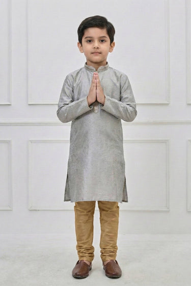 Silk Fabric Grey Festive Wear Readymade Kurta Pyjama For Boys