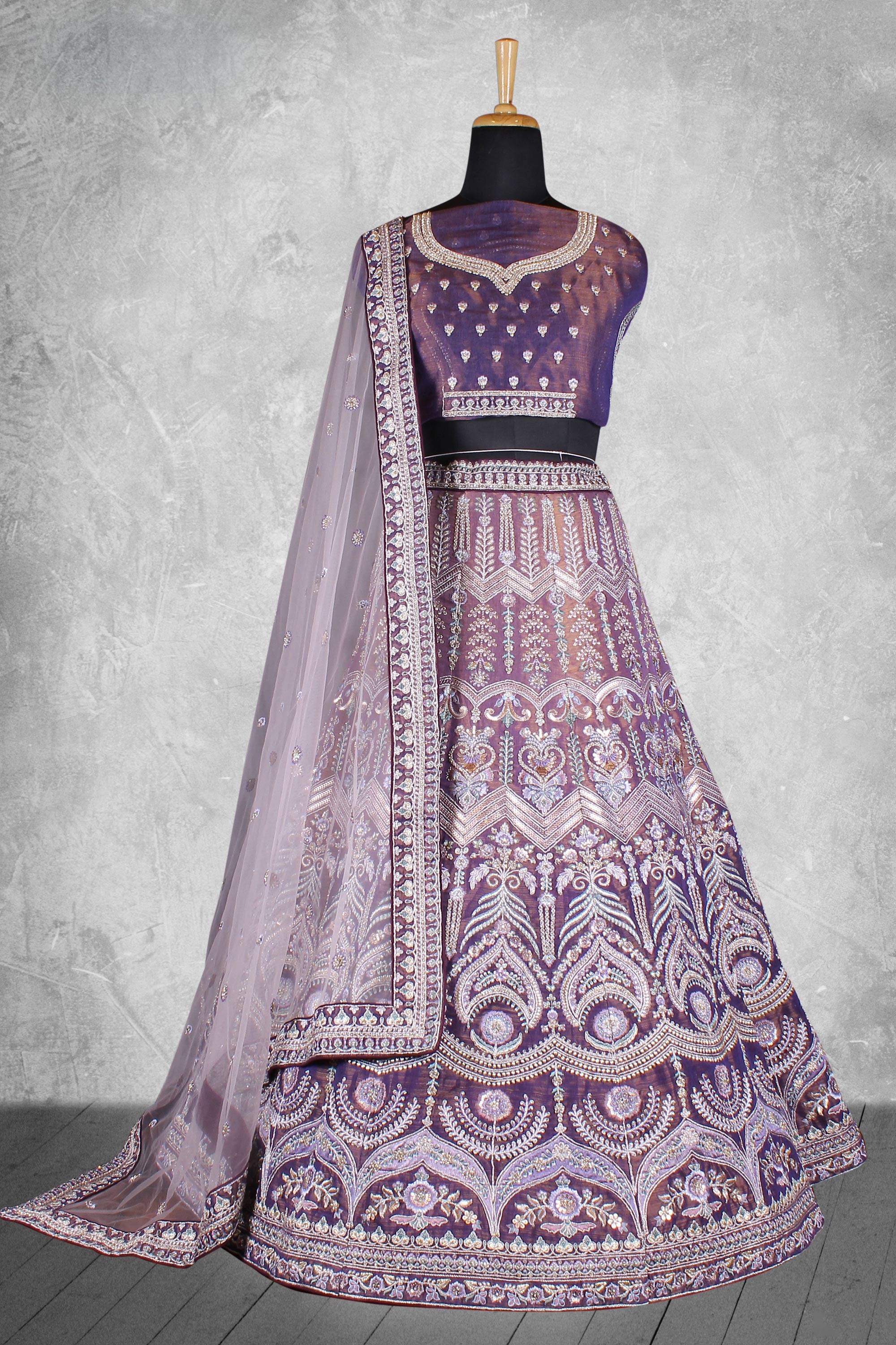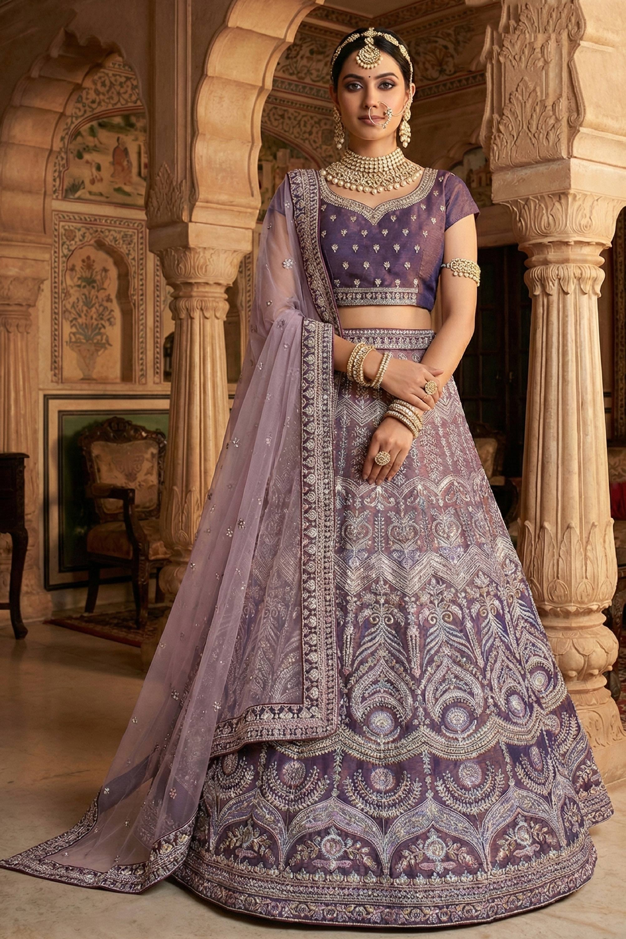 Purple Velvet Fabric Embroidered Bridal Lehenga Choli