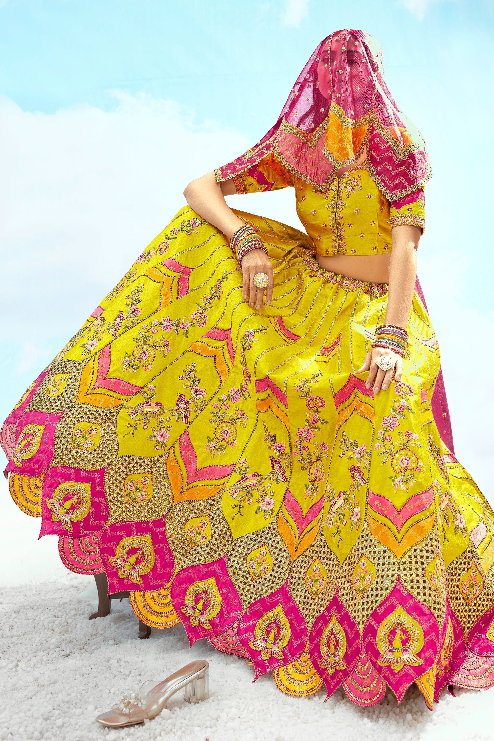 Embroidered Yellow Color Bridal Lehenga In Silk Fabric With Designer Choli