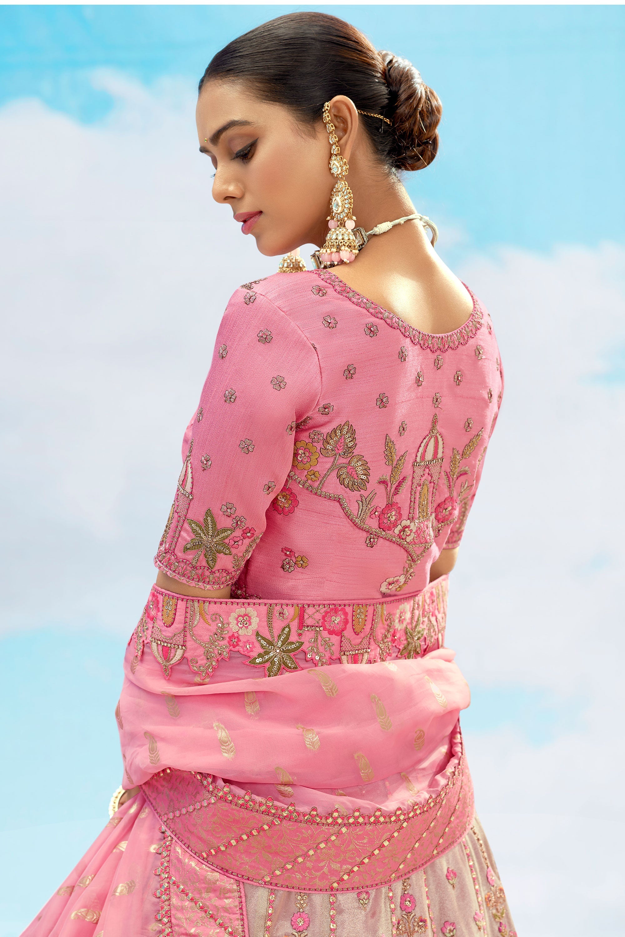 Silk Fabric Bridal Lehenga Choli In Pink Color