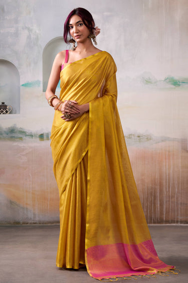 Traditional Festive Mustard Tissue Handloom Saree