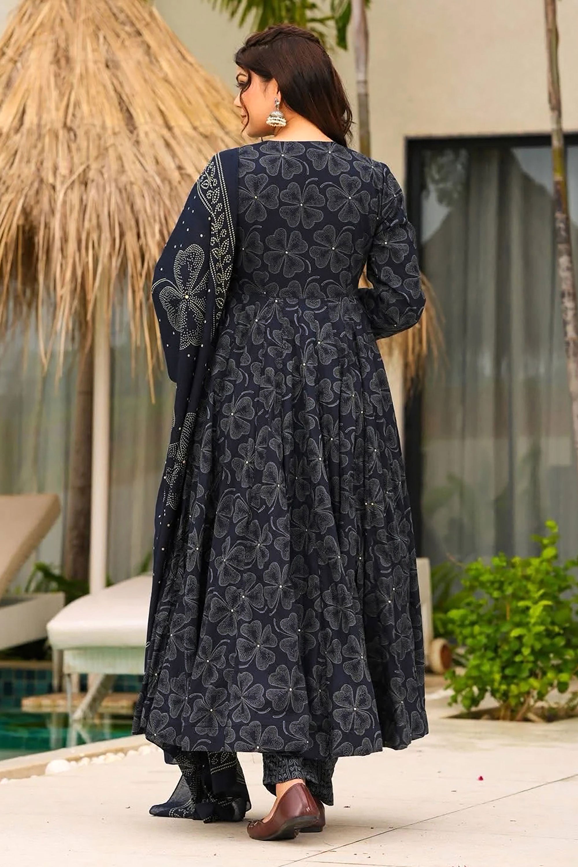 Black Muslin Printed Readymade Anarkali Salwar Kameez