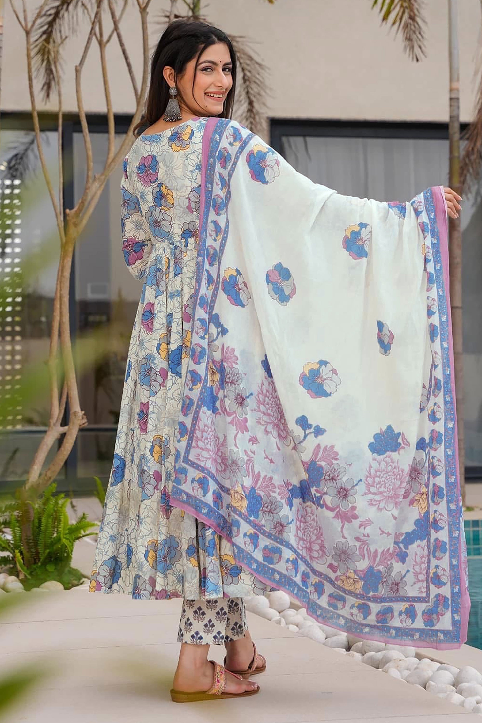 This Muslin Printed Fancy Readymade Anarkali Salwar Kameez is a seamless blend of fashion and tradition. Featuring a flattering design with delicate prints, this ready-made attire is both functional and fashionable. Its lightweight fabric ensures comfort during long wear, while its vibrant look makes it an excellent choice for festive gatherings or family events. Perfect for any special occasion, this Anarkali Salwar Kameez stands out for its timeless appeal and versatile styling options. Get ready in minutes with its convenient, pre-stitched design that’s crafted to offer the perfect fit.