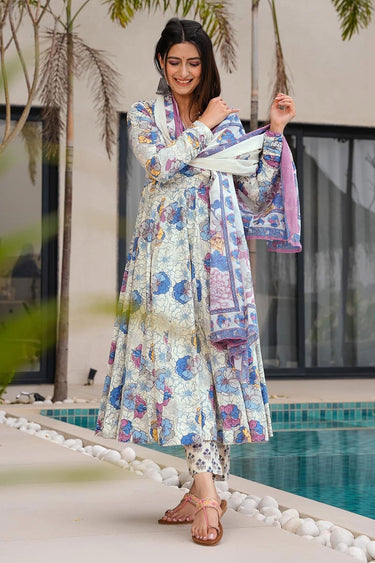 Lovely White Printed Readymade Anarkali Salwar Kameez