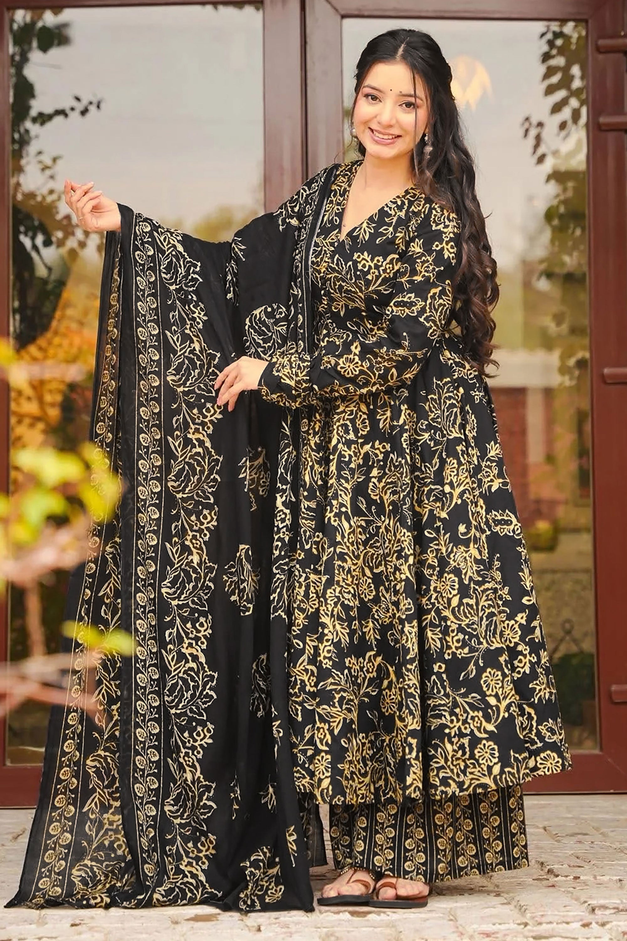 Printed Muslin 3 Piece Readymade Anarkali Style Salwar Suit
