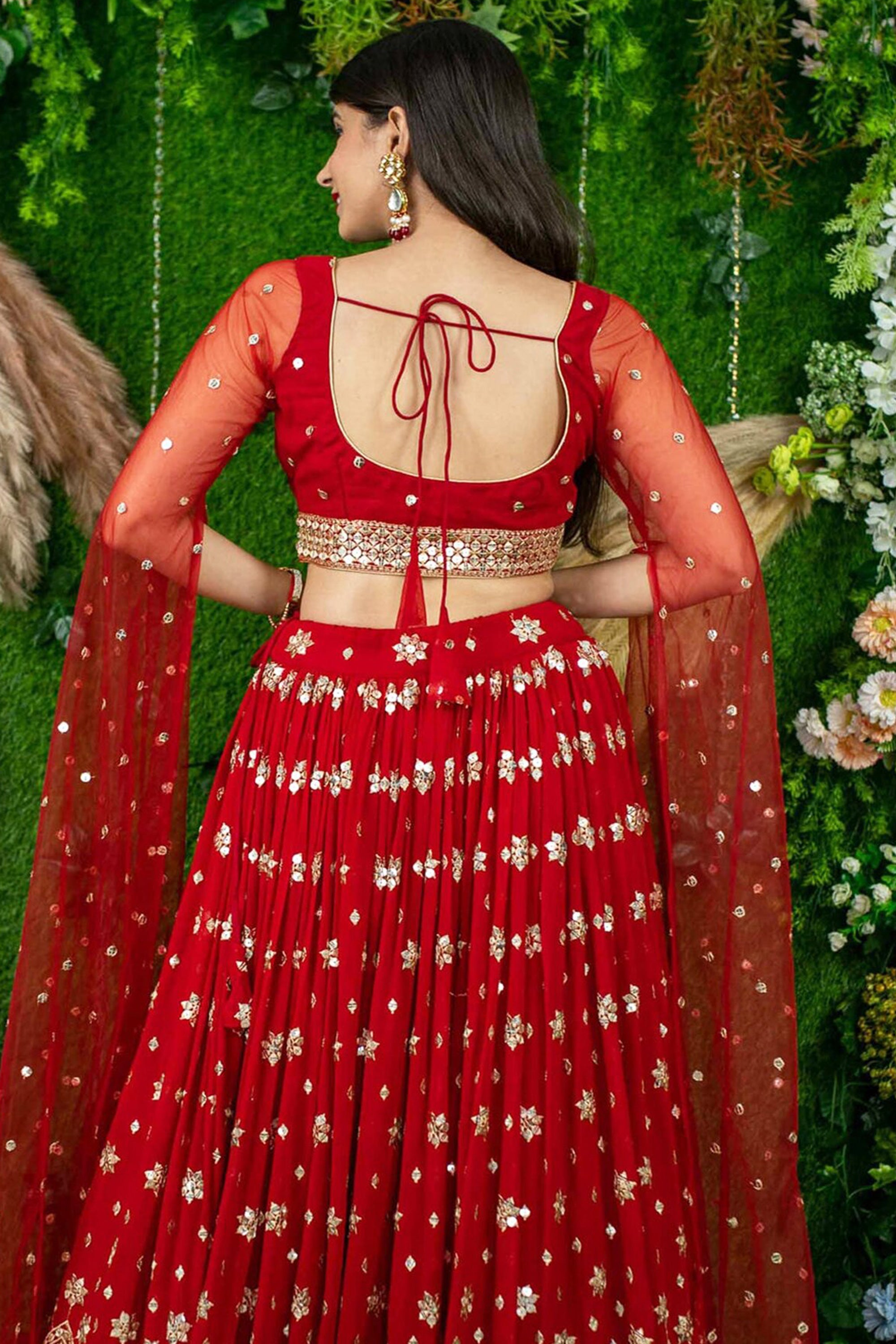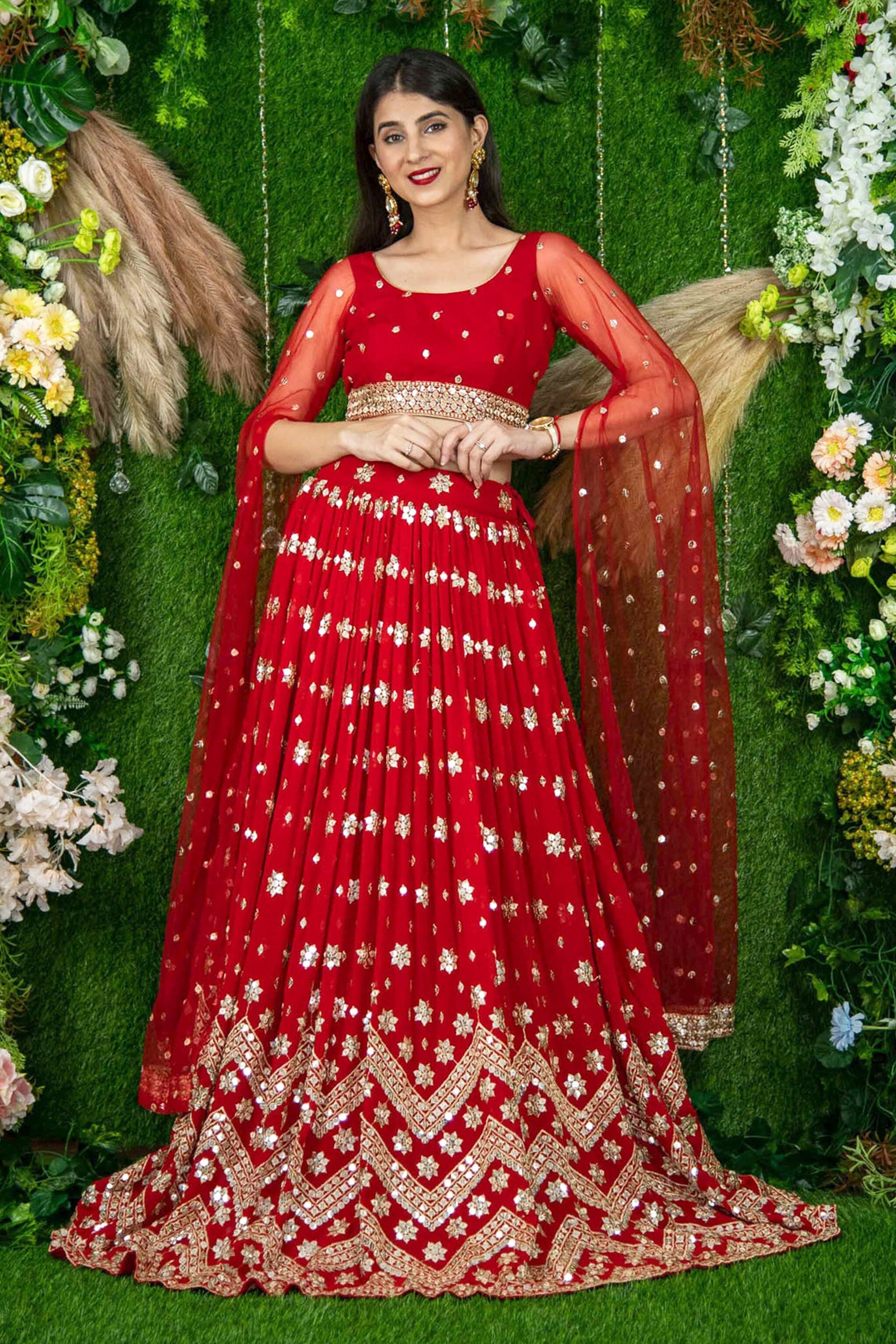 Red Sangeet Wear Designer Sequins Work Georgette Lehenga Choli