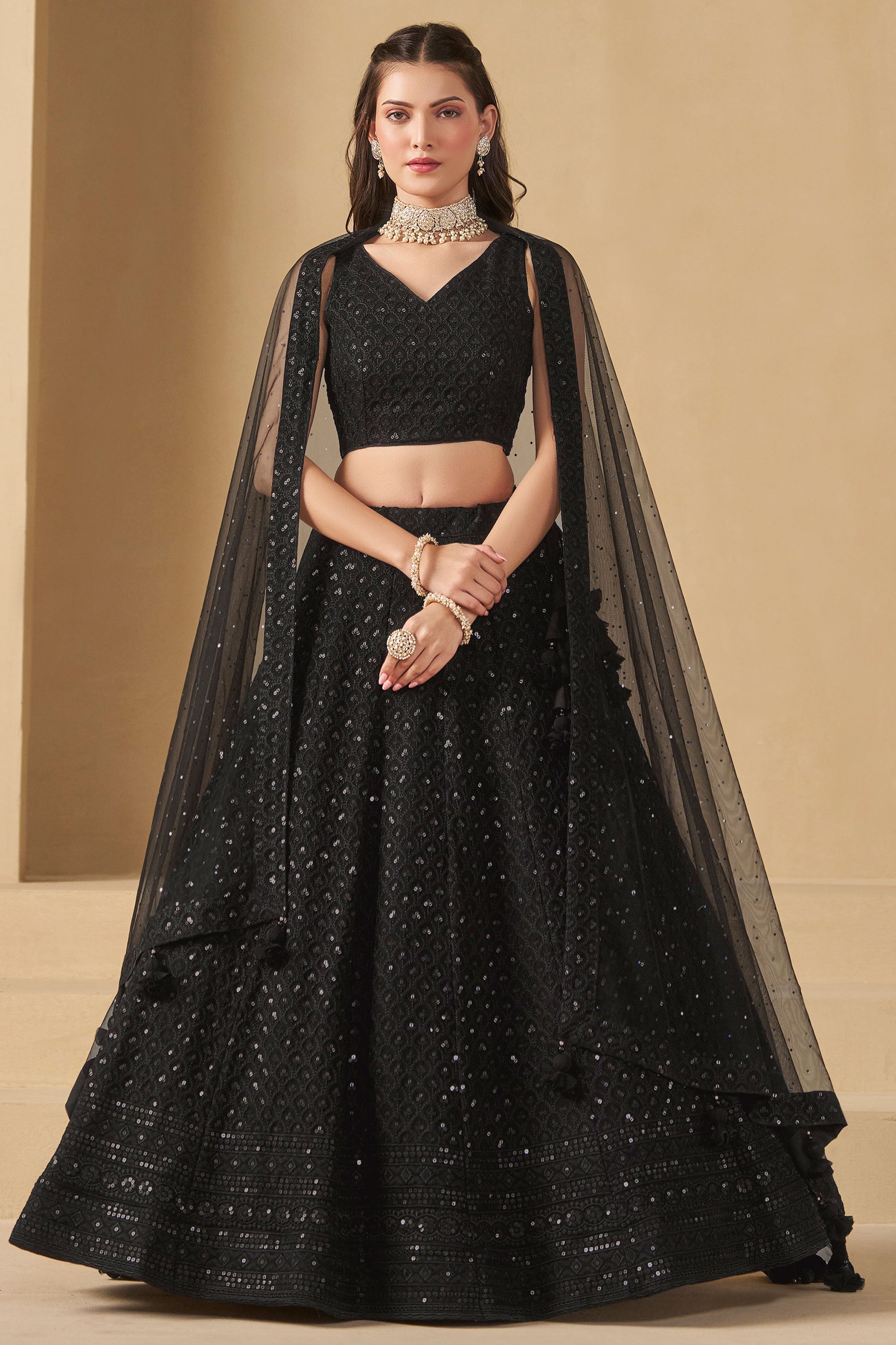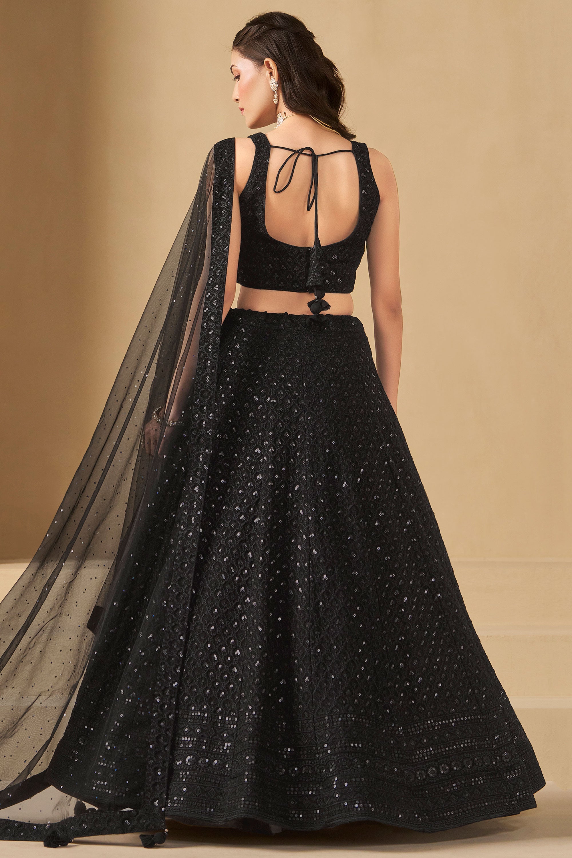 Black Lehenga Choli With Sequins Work Georgette Fabric