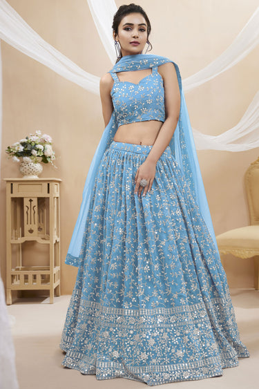Sky Blue Color Designer Embroidered Lehenga Choli In Georgette Fabric