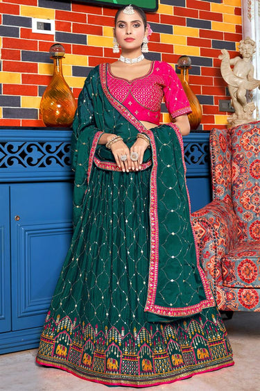 Teal Color Embroidered Work Beatific Wedding Wear Lehenga Choli