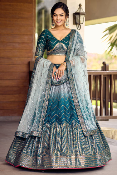 Trendy Blue Chinon Fabric Sequins Work Lehenga For Sangeet