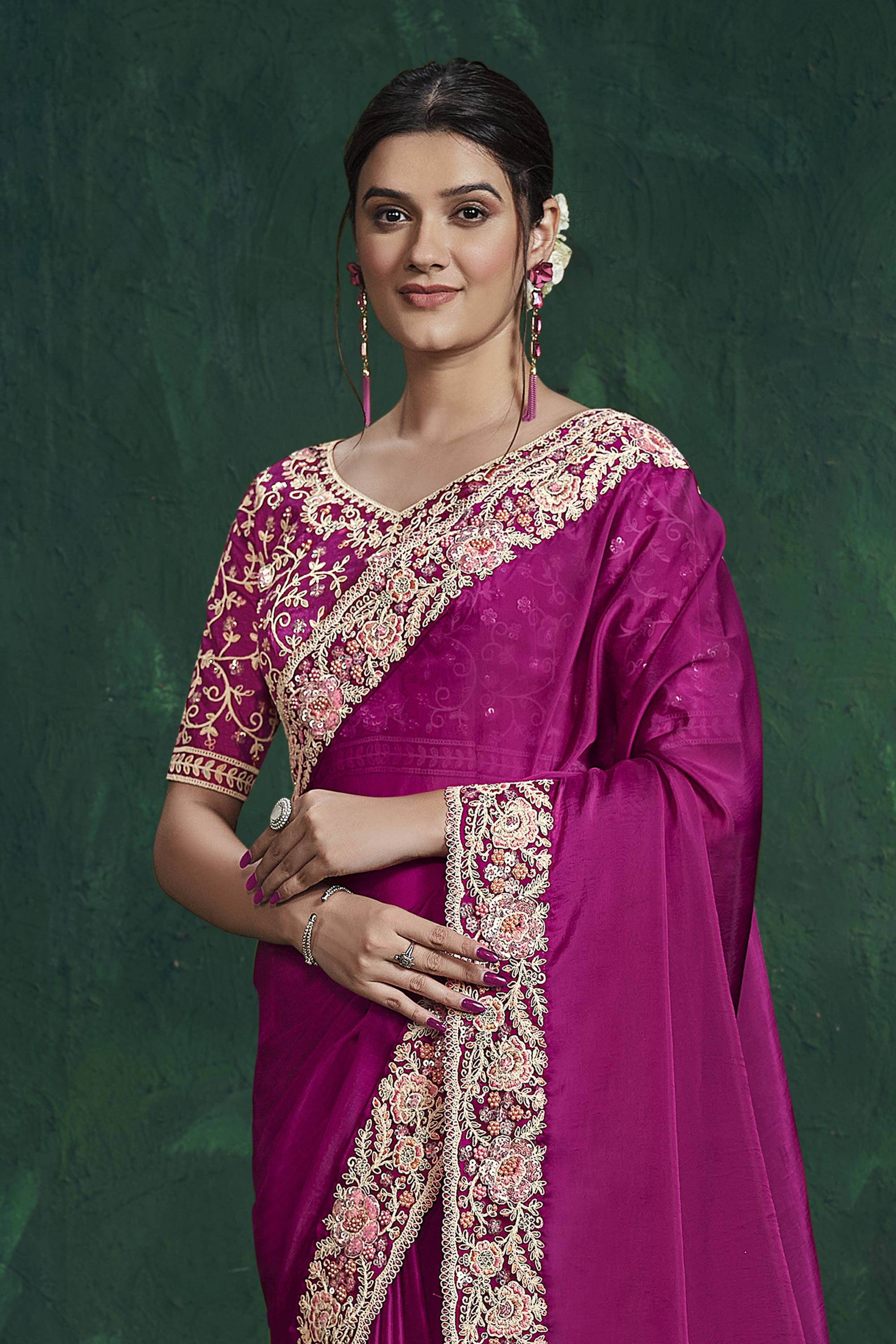 Art Silk Fabric Magenta Wedding Wear Readymade Saree