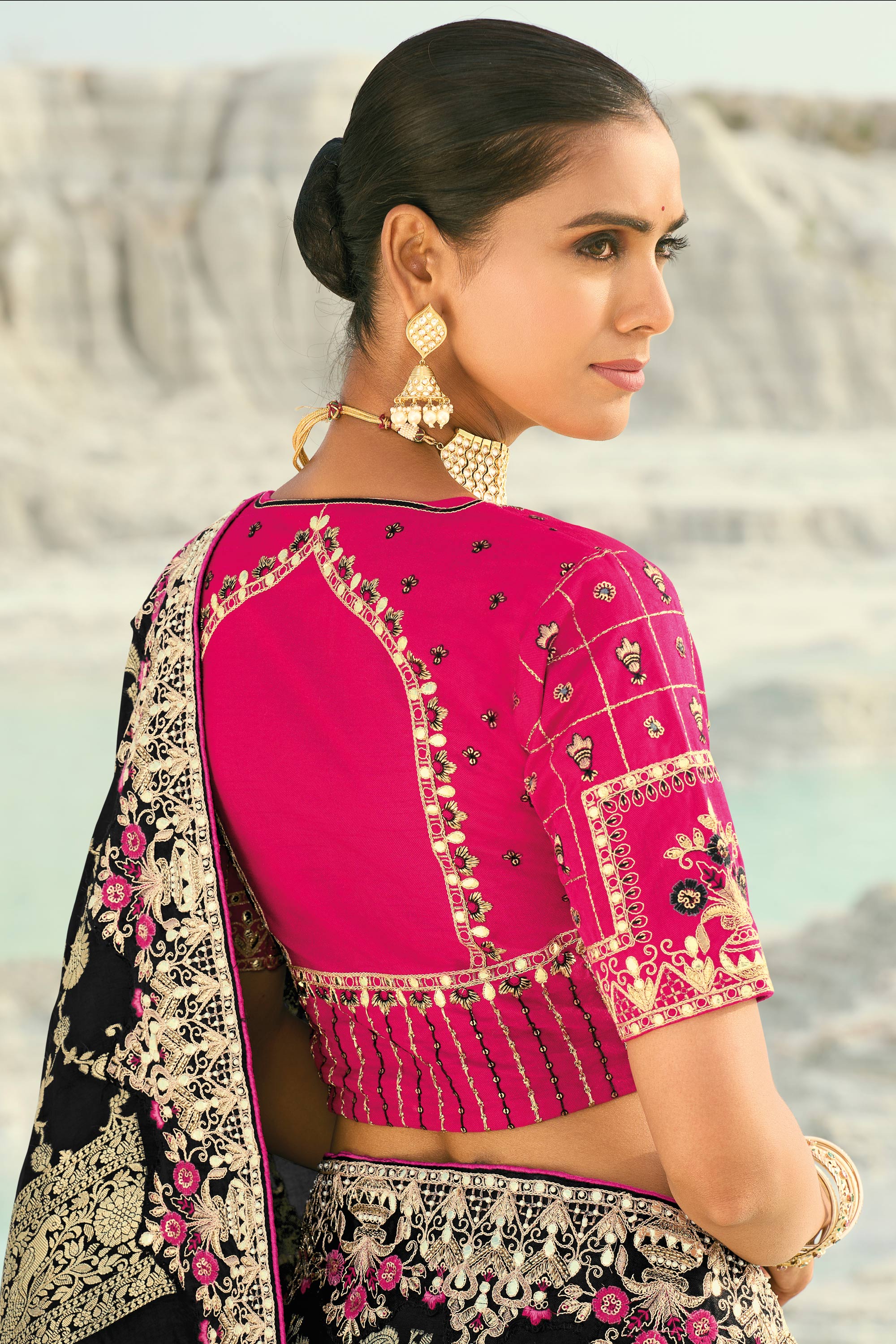 Border Work Black Function Wear Designer Saree With Embroidered Blouse