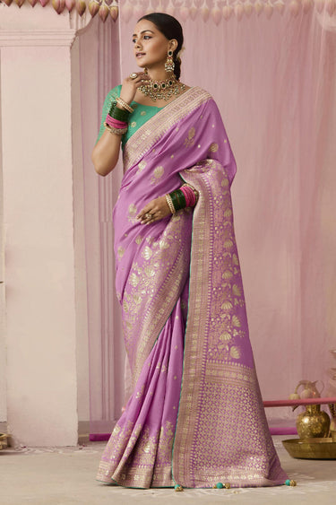 Lavender Wedding Silk Fabric Saree