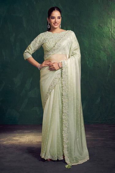 This stylish readymade designer saree is crafted to bring out elegance and sophistication for wedding occasions. The detailed embroidered border work highlights its premium look, making it a perfect addition to your festive wardrobe. Note: Due to digital photography and screen resolution, slight color variations may occur.