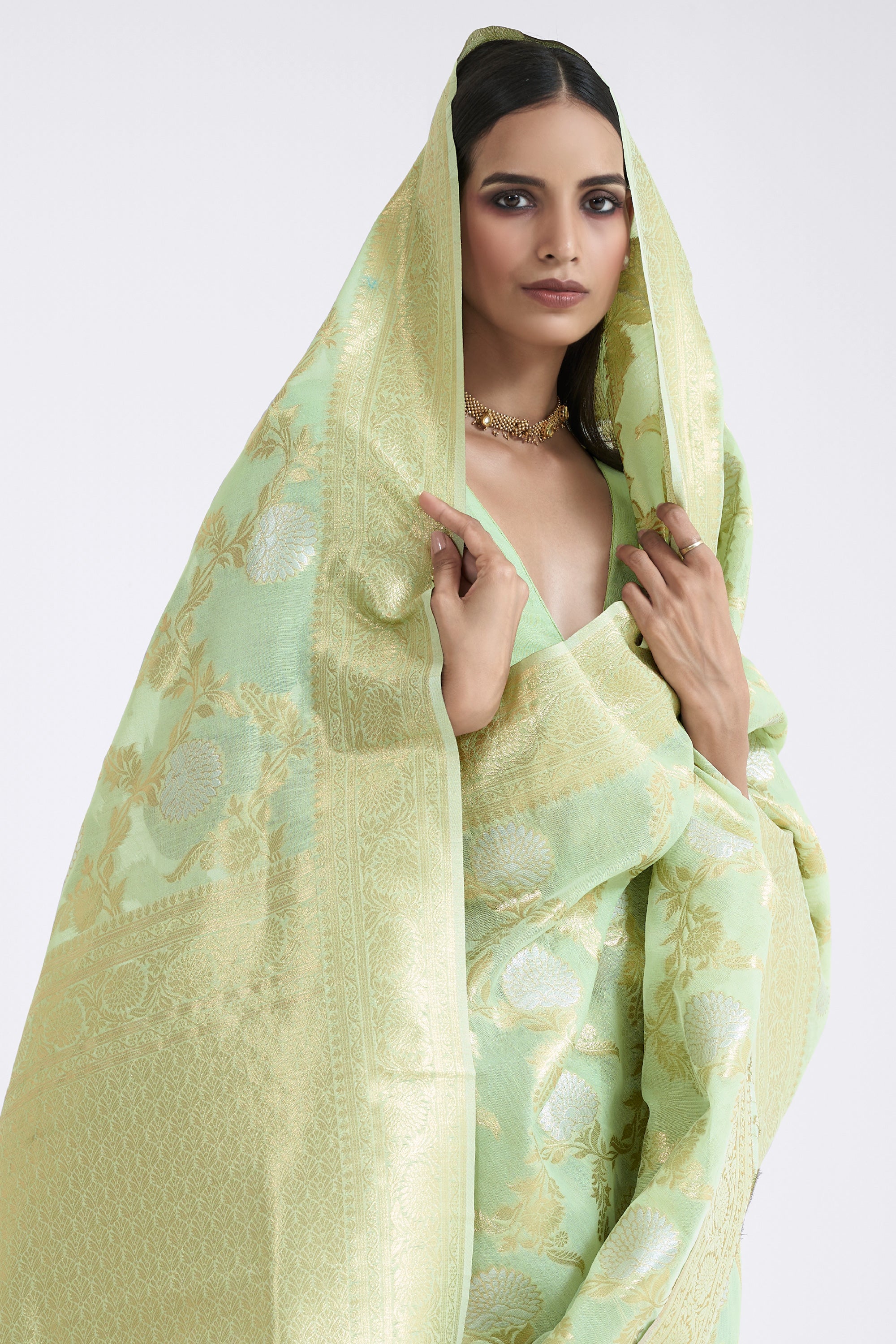 Sea Green Linen Zari Weaving Work Saree For Wedding Wear