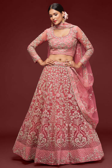 Excellent Net Pink Color Lehenga With Embroidered Work