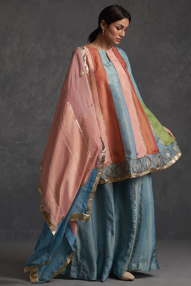 Exclusive Multi Color Silk Fabric Hand Embroidered Reception Wear Beautiful Readymade Sharara Set