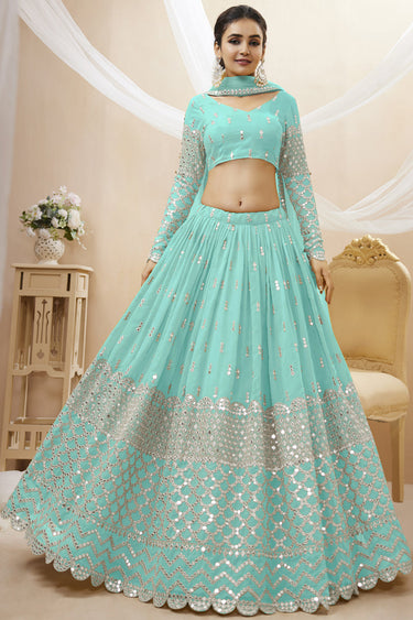Light Cyan Color Reception Wear Georgette Fabric Embroidered Lehenga Choli