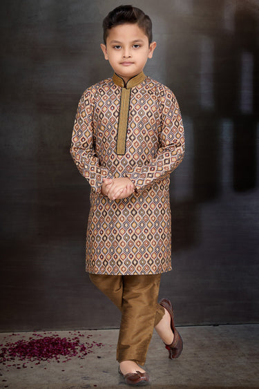 Sangeet Function Wear Chikoo Color Cotton Fabric Stylish Readymade Kurta Pyjama For Boys