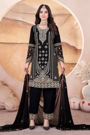 Embroidered Georgette Black Color Readymade Designer Salwar Kameez