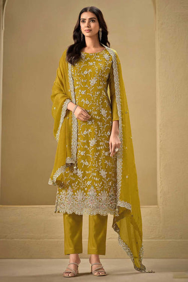 Mustard Color Chinon Fabric Alluring Function Wear Salwar Suit