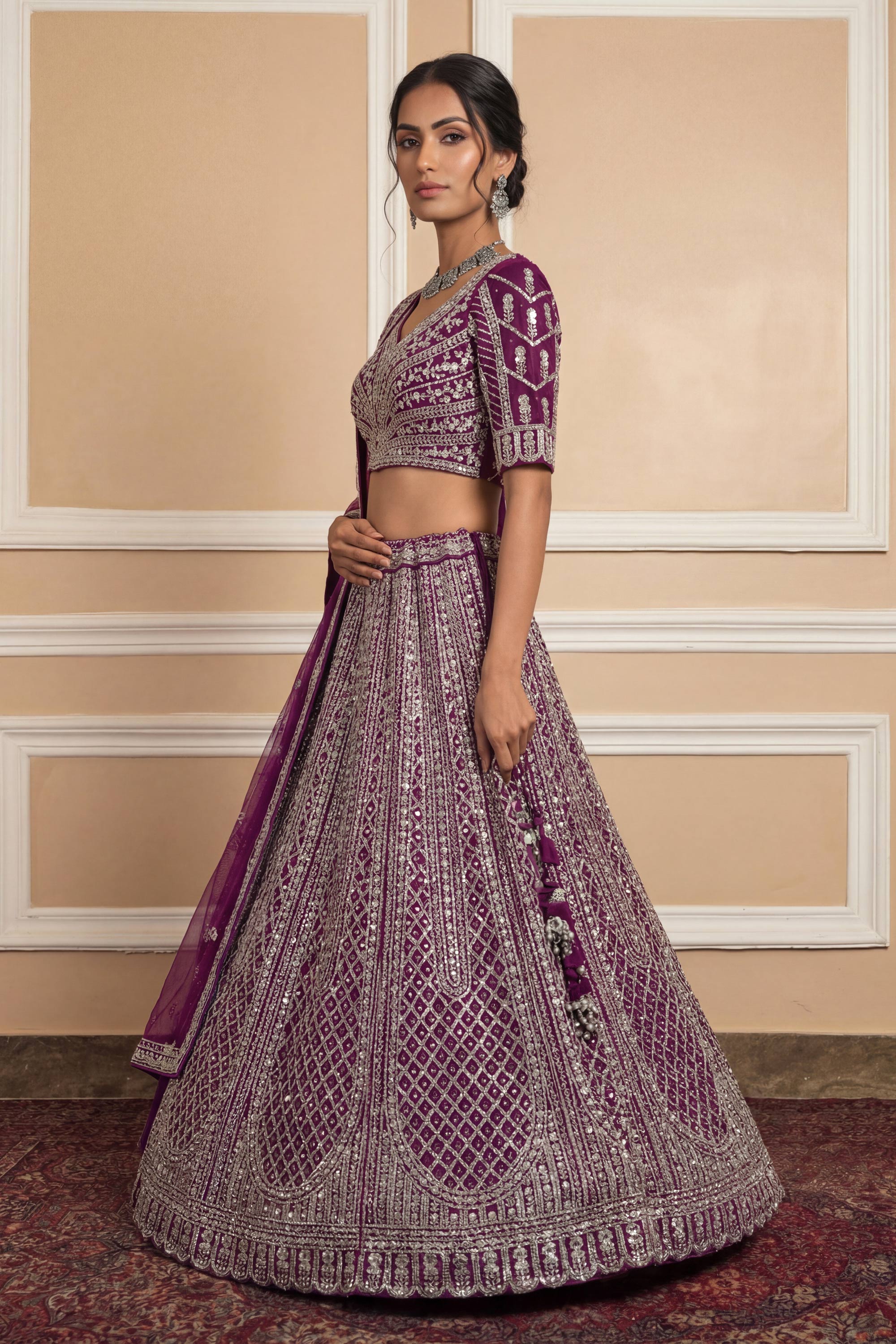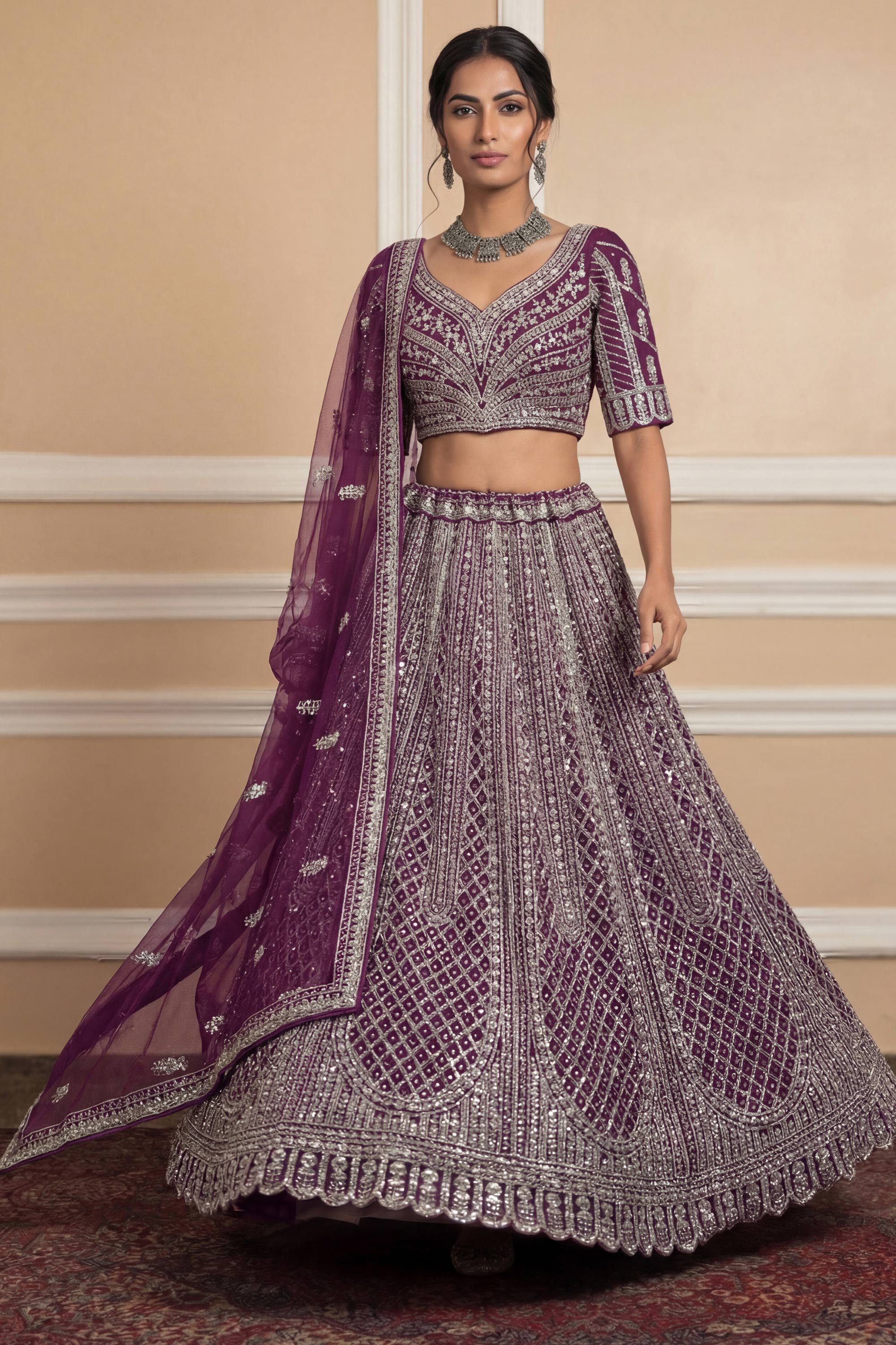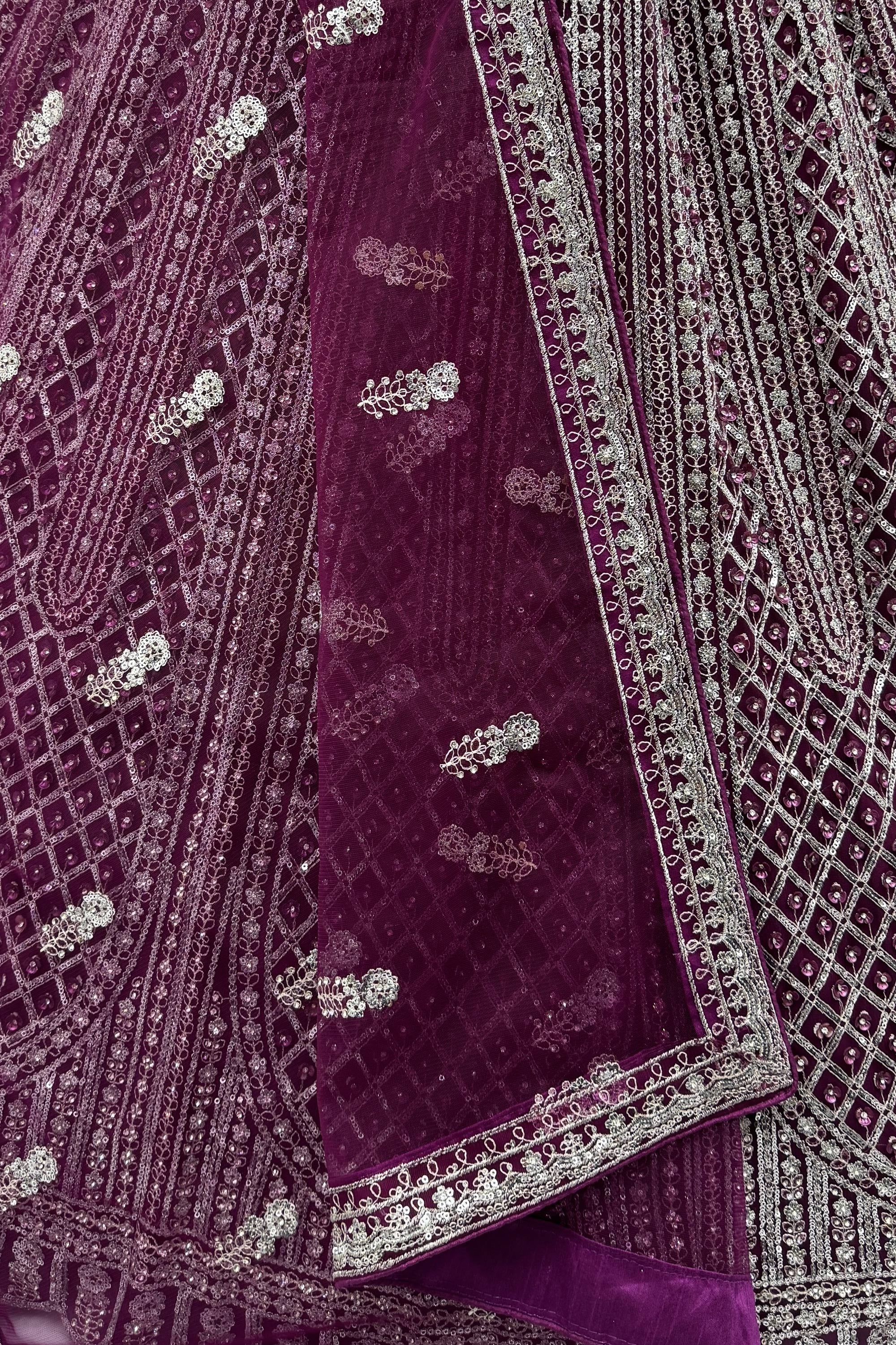 Purple Wedding Wear Net Sequins Embroidered Lehenga Choli With Dupatta