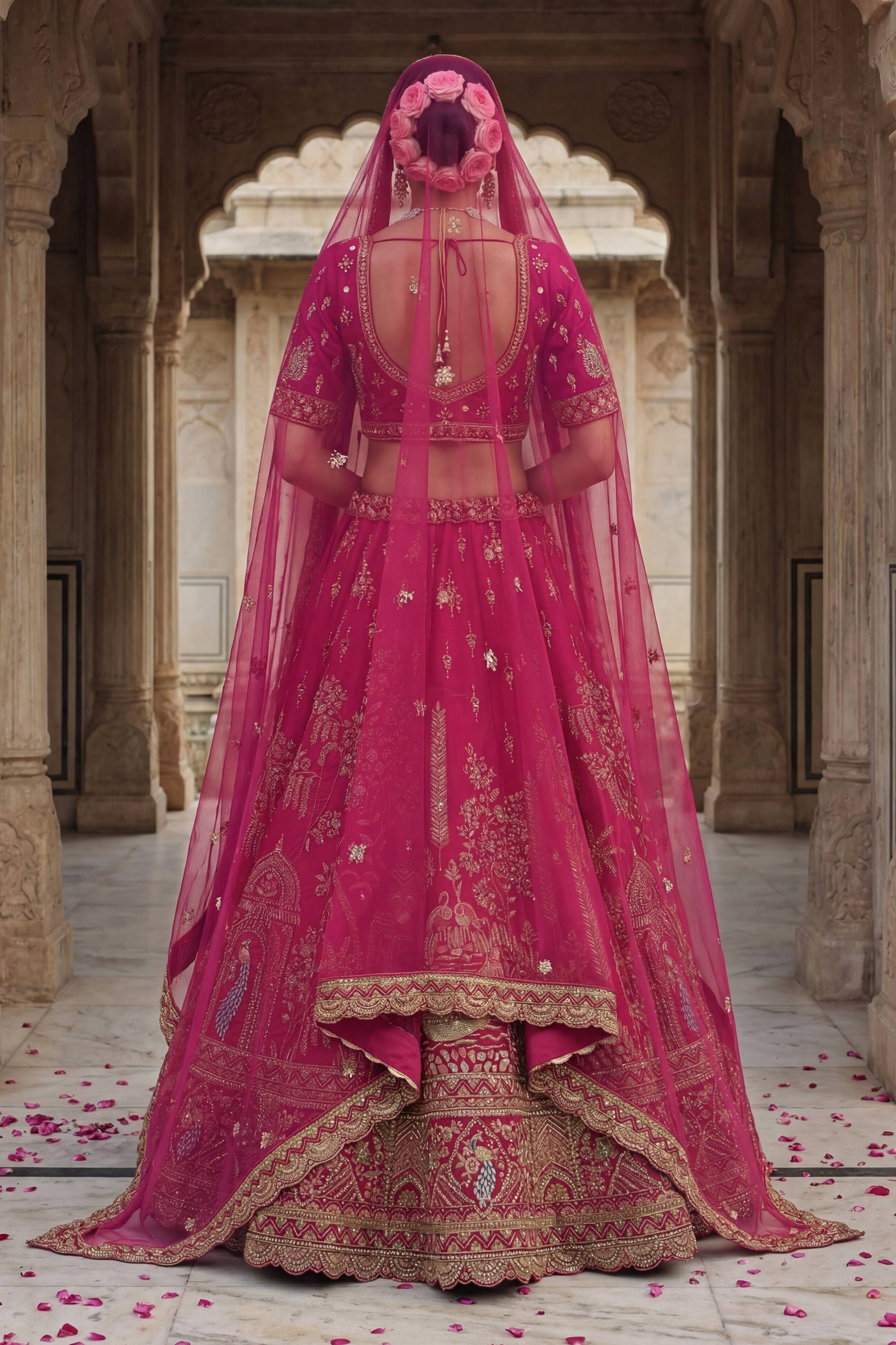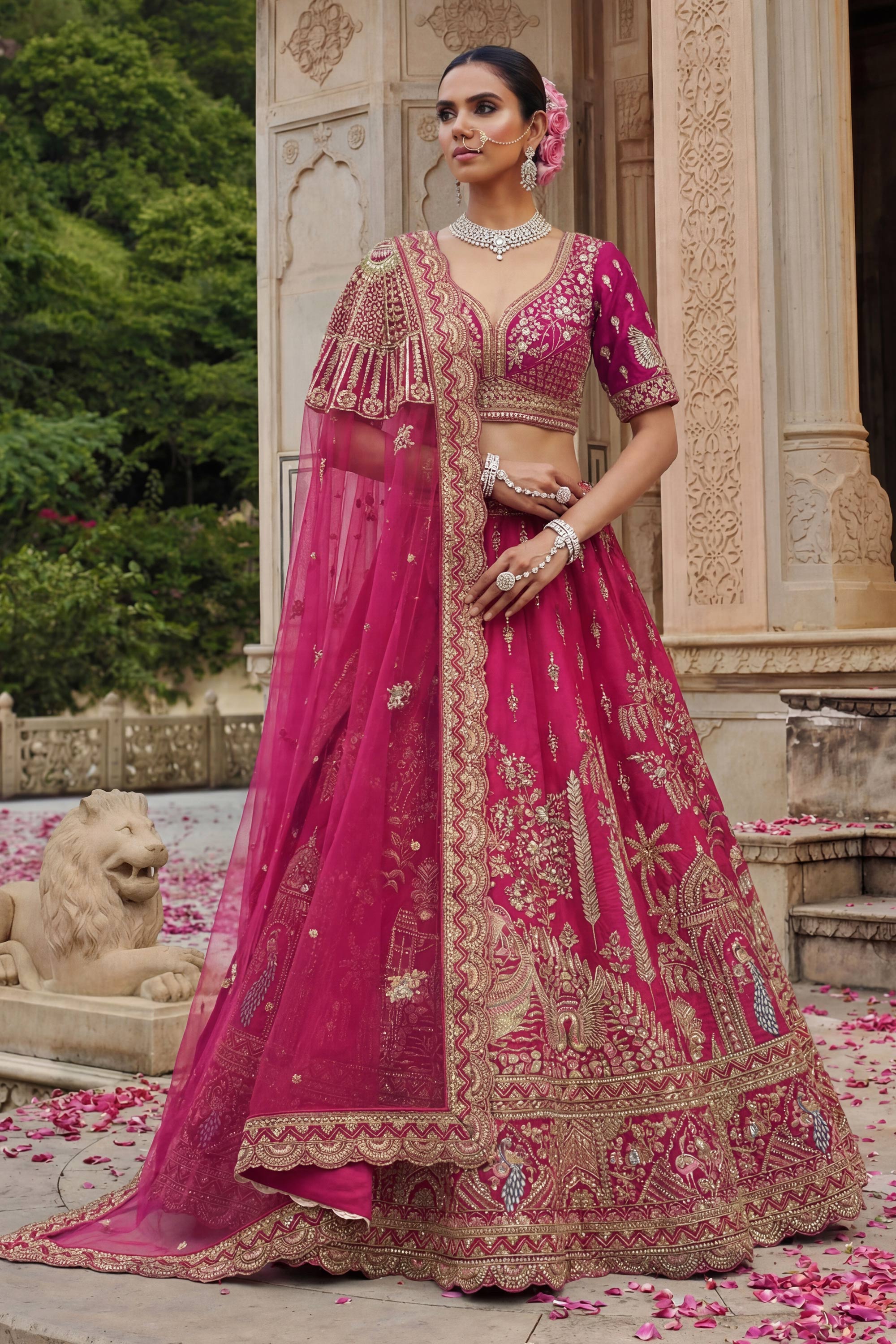 Embrace timeless bridal beauty with this exquisitely designed Lehenga Choli made from rich silk fabric. The detailed embroidery work on the blouse enhances its classic look, while the soft net dupatta adds a light and elegant finish. Featuring a stunning rich color, this ensemble is perfect for weddings and grand traditional occasions. Note: Due to digital photography and lighting effects, slight color variations may occur.