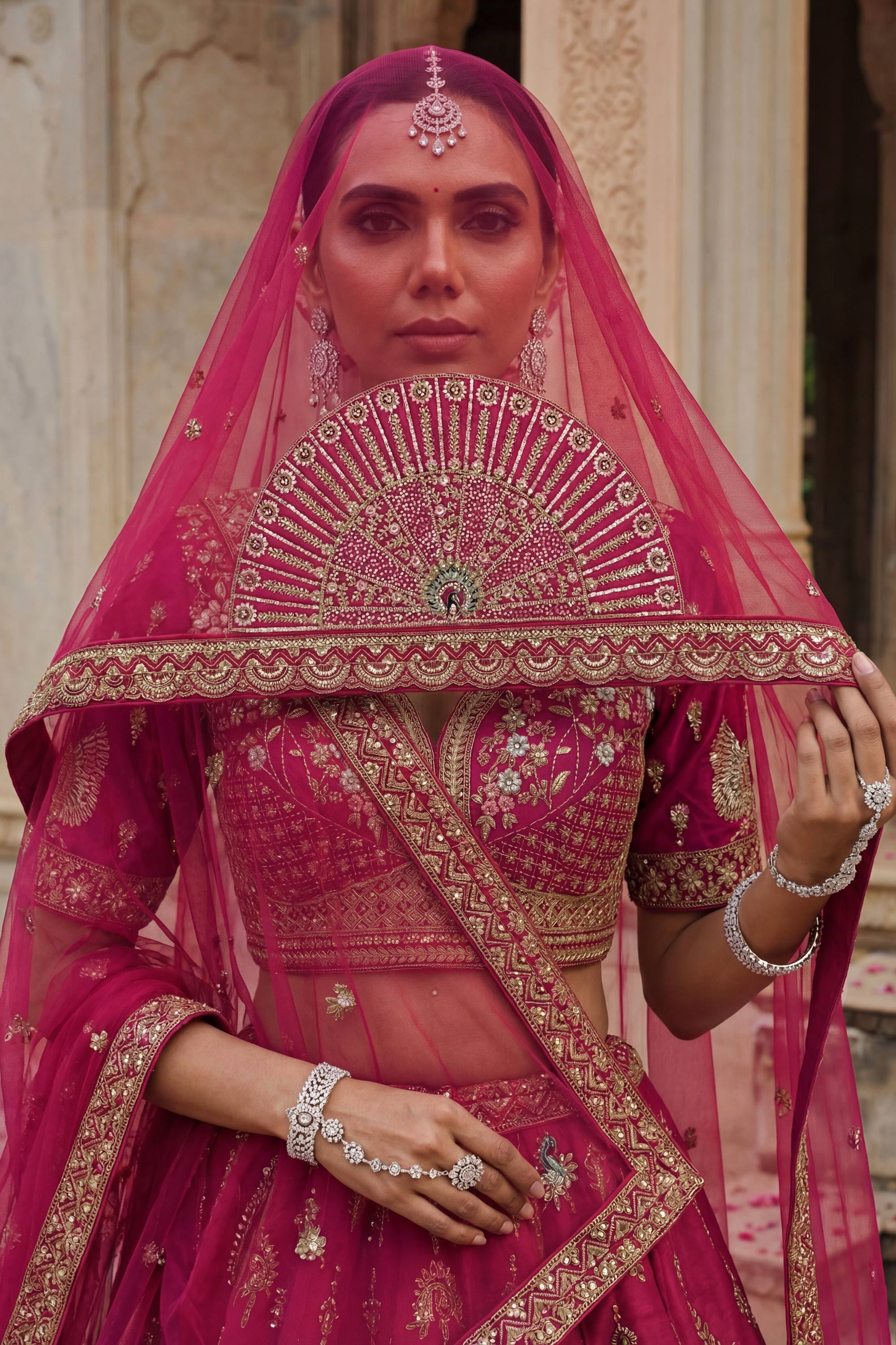 Silk Fabric Pink Color Heavy Embroidered Bridal Lehenga Choli
