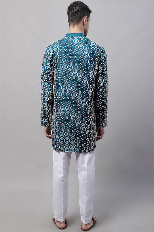 $48.13 USD$96.25 USD Original Price Save 50%/ Stunning Sea Green Sangeet Wear Readymade Men KurtaSave 50%