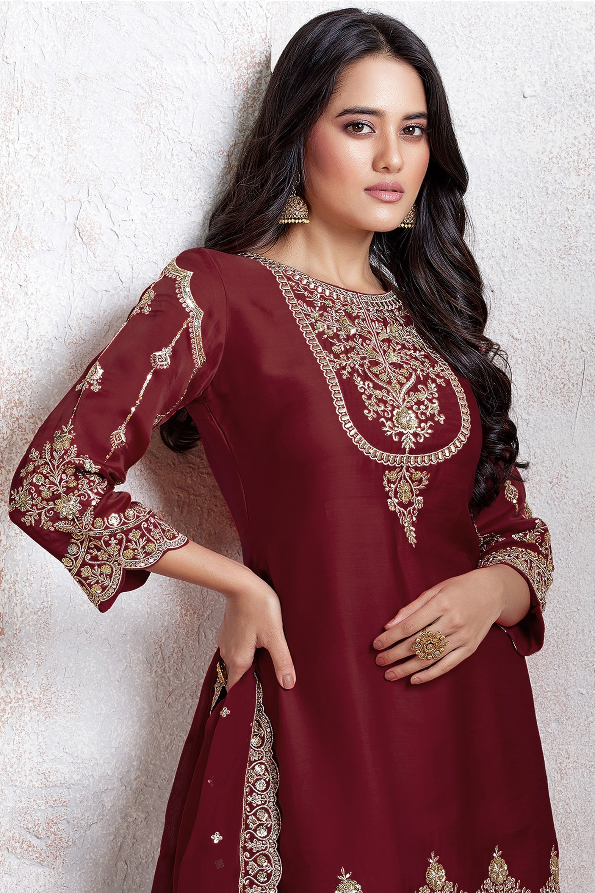 Maroon Embroidered Art Silk Patiala Suit