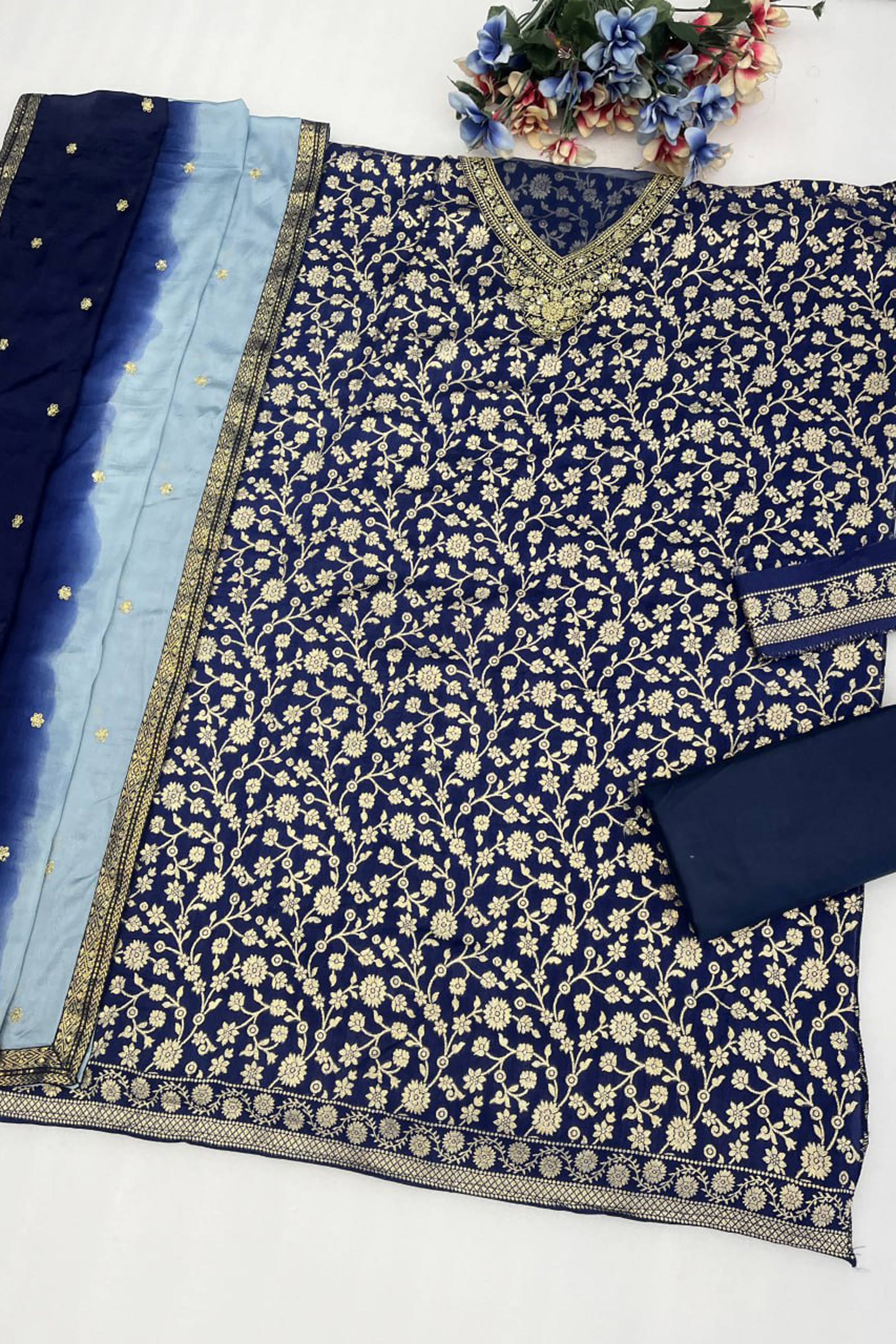 Shilpa Shetty Blue Viscose Silk Embroidered Palazzo Suit
