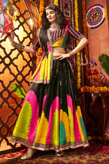 Celebrate Navratri in style with this Beautiful Navratri Special Real Mirror Work Lehenga Choli. Designed with premium mirror detailing and elegant stitching, it offers a classic look with a modern twist. The outfit’s breathable material keeps you comfortable through garba nights or special festivities, while its bright, traditional hues reflect joy and energy. Perfect for adding charm to your ethnic wardrobe, this set combines tradition with trendy vibes. Complete with a lehenga, choli, and matching dupatta, it is designed to bring out your festive best. This timeless outfit pairs beautifully with your favorite ethnic accessories.